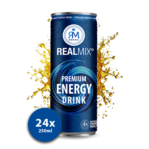 REALMIX PREMIUM ENERGY DRINK Kohlensäurehaltiges Energiegetränk. Pasteurisiert. Hoher Koffeingehalt. Für Kinder sowie schwangere oder stillende Frauen nicht empfohlen. (30 mg/100 ml). Zutaten: Wasser, Fruktose-Glukose-Sirup, Kohlendioxid, Säuerungsmittel: Zitronensäure; Säureregulator: Natriumcitrate; Aroma, Koffein (0,030 %), Farbstoff: E150c; Konservierungsmittel: Natriumbenzoat, Guarana-Extrakt, Grüntee-Extrakt, Schisandra-Extrakt, Damiana-Extrakt, Mate-Extrakt, Inositol, Glucuronolacton, Vitamine: Niacin, Pantothensäure, Vitamin B2, Vitamin B6, Vitamin B12. Mindestens haltbar bis: siehe Dosenboden.…